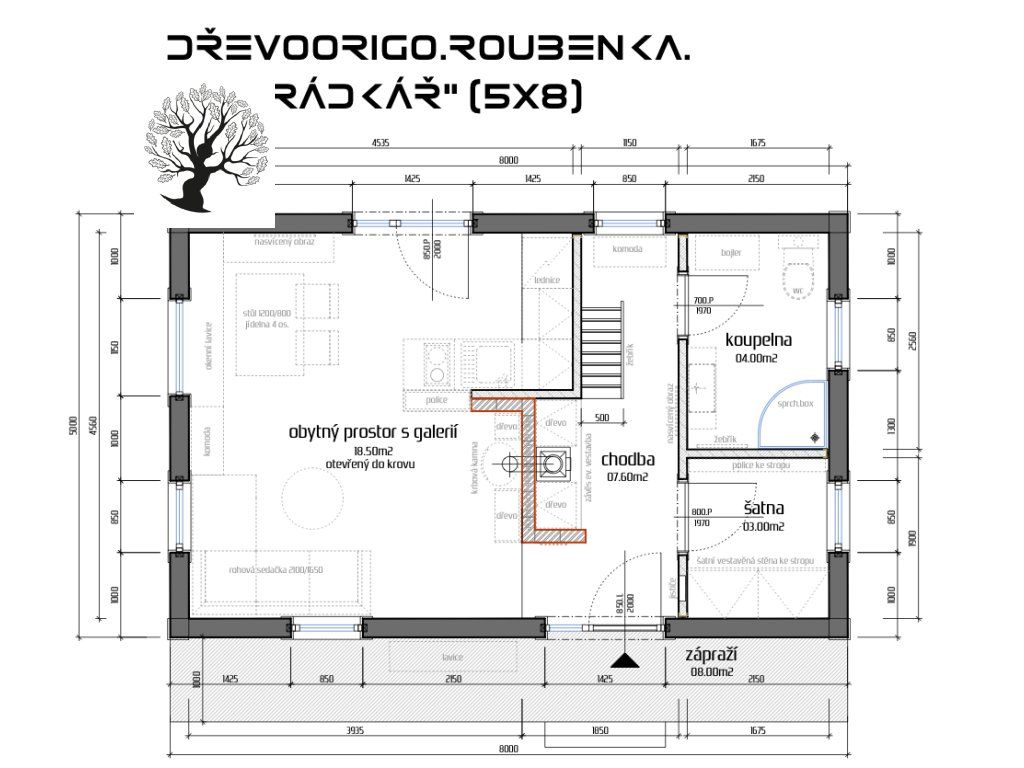 - Půdorys: 5x8 metrů